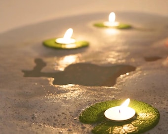 THUCHENYUC Badewannen Weinhalter Mit Kerzen - Schwimmende Lotus Blumen Für Entspannungsbad