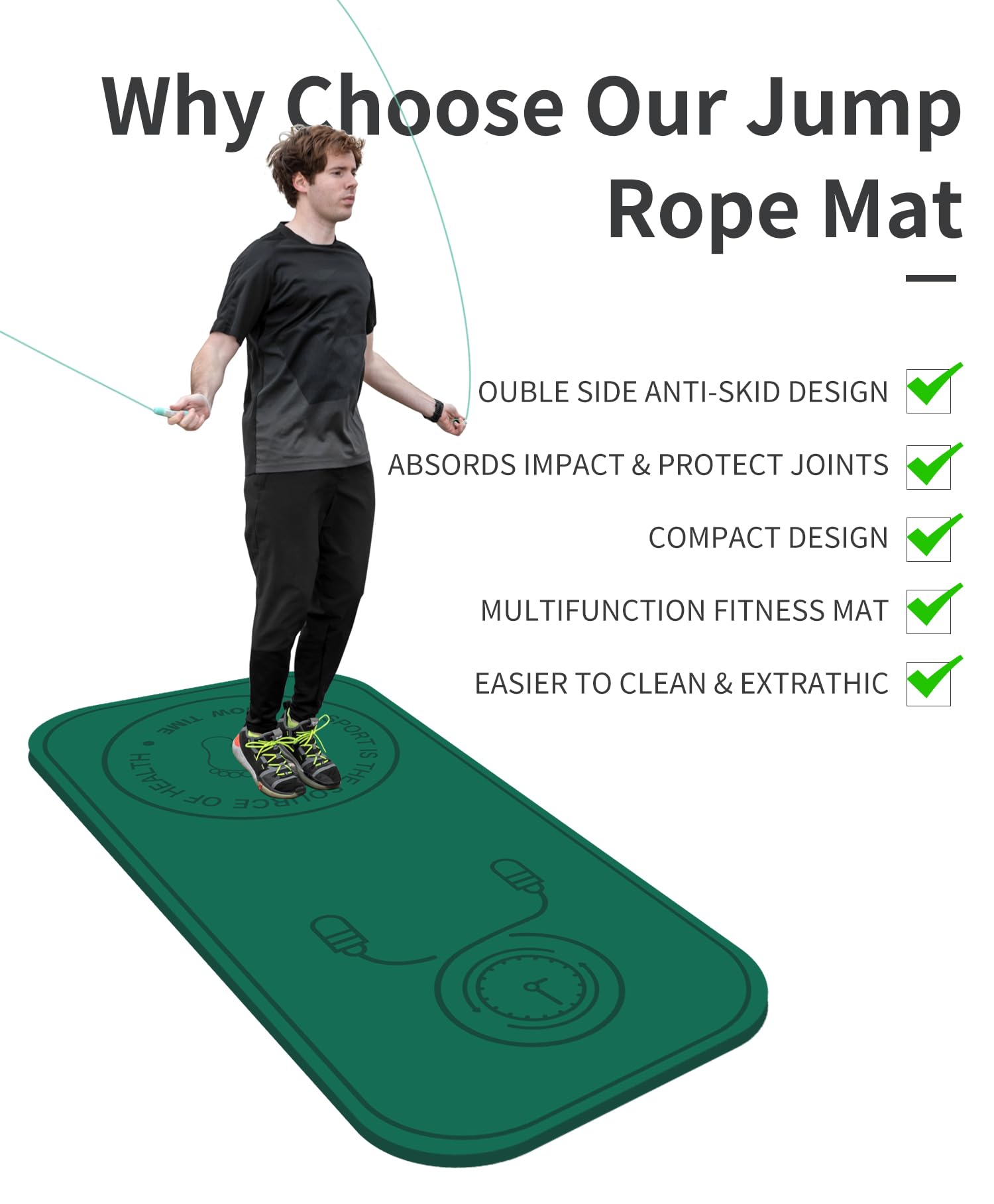 Endlich eine Matte, die deine Springseile schont und den Boden schützt! Diese 6mm dicke TPE-Matte in 58x58cm ist genau das Richtige für dein Home-Workout. Super rutschfest durch das spezielle Wassermuster-Design auf der Unterseite - da verrutscht nichts! Die stoßdämpfende Wirkung schont deine Gelenke und reduziert den Lärm für die Nachbarn. Perfekt nicht nur für Seilspringen, sondern auch für Yoga, Gymnastik oder als Spielmatte für Kinder. Aus hochwertigem TPE-Material - elastisch, atmungsaktiv und hautfreundlich. Leicht zu reinigen und platzsparend zu verstauen. Ob in der Wohnung, im Gym oder auf der Terrasse - diese Matte macht jedes Training sicherer und angenehmer. Einfach ausrollen und loslegen!
