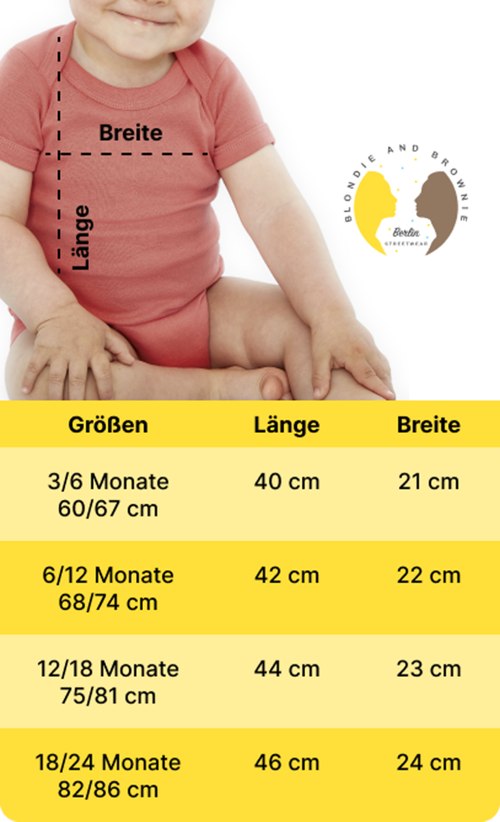 Erhältlich in Größen von 0-3 Monaten bis 24 Monaten. Maschinenwäsche bei 40°C, nicht im Trockner trocknen. Bügeln mit mittlerer Temperatur. Perfektes Geschenk für junge Eltern!