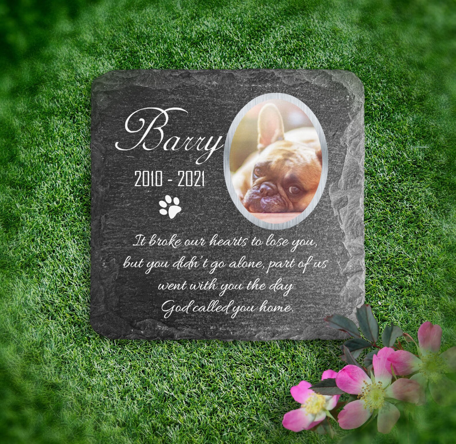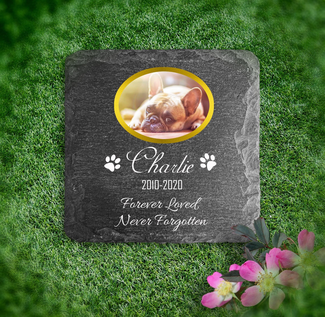 TULLUN Personalisierte Haustier Gedenktafel - Schiefer Grabstein Mit Foto & Pfotenabdruck