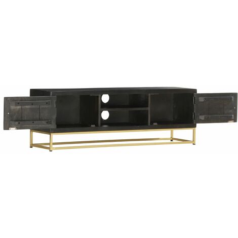 TV Lowboard Hängend Schwarz 180cm - Massivholz TV Schrank Mit Schubladen