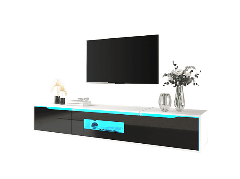 Wumagin LED TV-Schrank Hochglanz Schwarz - Für Bis 70 Zoll Fernseher Mit 2 Schubladen