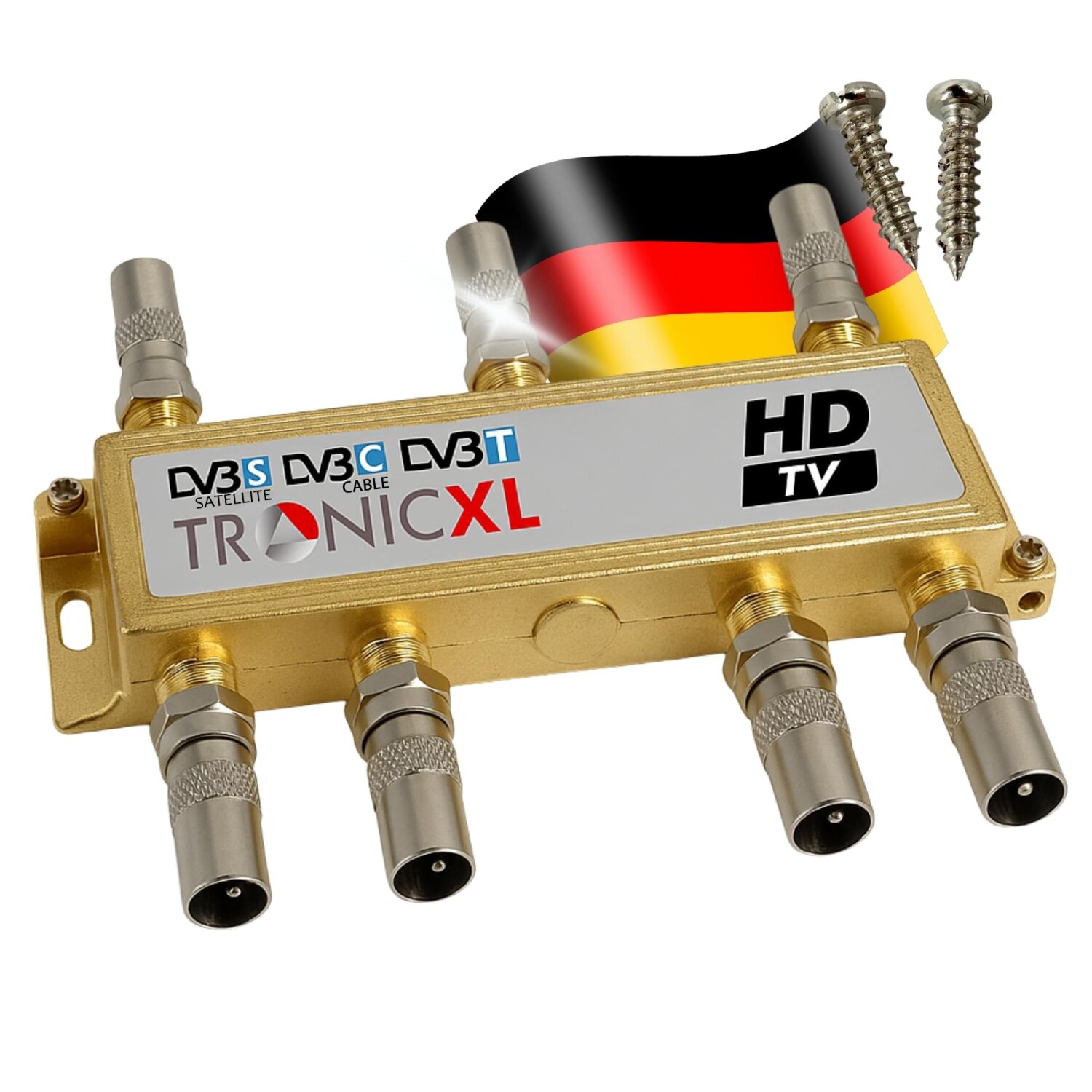 TronicXL 6-fach Antennenverteiler - 4K TV Splitter Mit Adaptern, 5-2400MHz