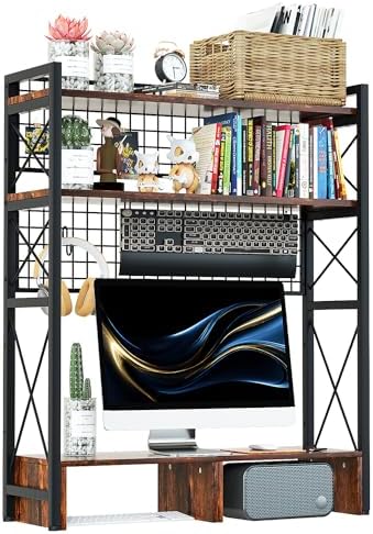 Platzmangel auf dem Schreibtisch? Dieses coole Regal von TWSOUL schafft Abhilfe! Mit 75 cm Länge und 98 cm Höhe bietet es jede Menge Stauraum. Aus Nussbaum und Metall gefertigt - richtig stabil und hält bis zu 25 kg pro Ebene. Das Gitterfach ist perfekt für Kopfhörer, Notizen oder Kleinkram. Die verstellbaren Füße sorgen für perfekten Stand, egal ob auf dem Tisch oder Boden. Montage ist einfach - in 15-20 Minuten steht das Teil! Perfekt fürs Homeoffice, Studentenzimmer oder Büro. Endlich alles schön ordentlich und griffbereit. Ob Monitor, Bücher oder Deko - hier findet alles Platz. Sieht nicht nur praktisch aus, sondern auch noch richtig gut! So macht Arbeiten gleich doppelt Spaß. Einfach aufbauen und über den gewonnenen Platz freuen!