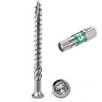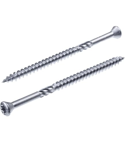 Für dein nächstes Terrassen-Projekt: Diese 5x70mm Terrassenschrauben aus Edelstahl C1 sind ideal für weiche bis mittelharte Hölzer wie Douglasie, Fichte oder Lärche. Mit Torx TX25 Antrieb und Cut-Spitze setzt du sie punktgenau an – super praktisch! Der Linsensenkkopf mit Fräsrippen sorgt für einen sauberen Abschluss. Tipp: Je nach Holz kann Vorbohren nötig sein, und bei sehr hellem Holz können leichte Verfärbungen auftreten. Am besten mit niedriger Drehzahl arbeiten und vorher testen. Pro m² brauchst du etwa 30 Stück. Geliefert werden die Schrauben im Karton, und für ein top Ergebnis empfehlen wir Edelstahl-Bits, um Fremdrost zu vermeiden. So klappt’s mit der Terrasse bestimmt!