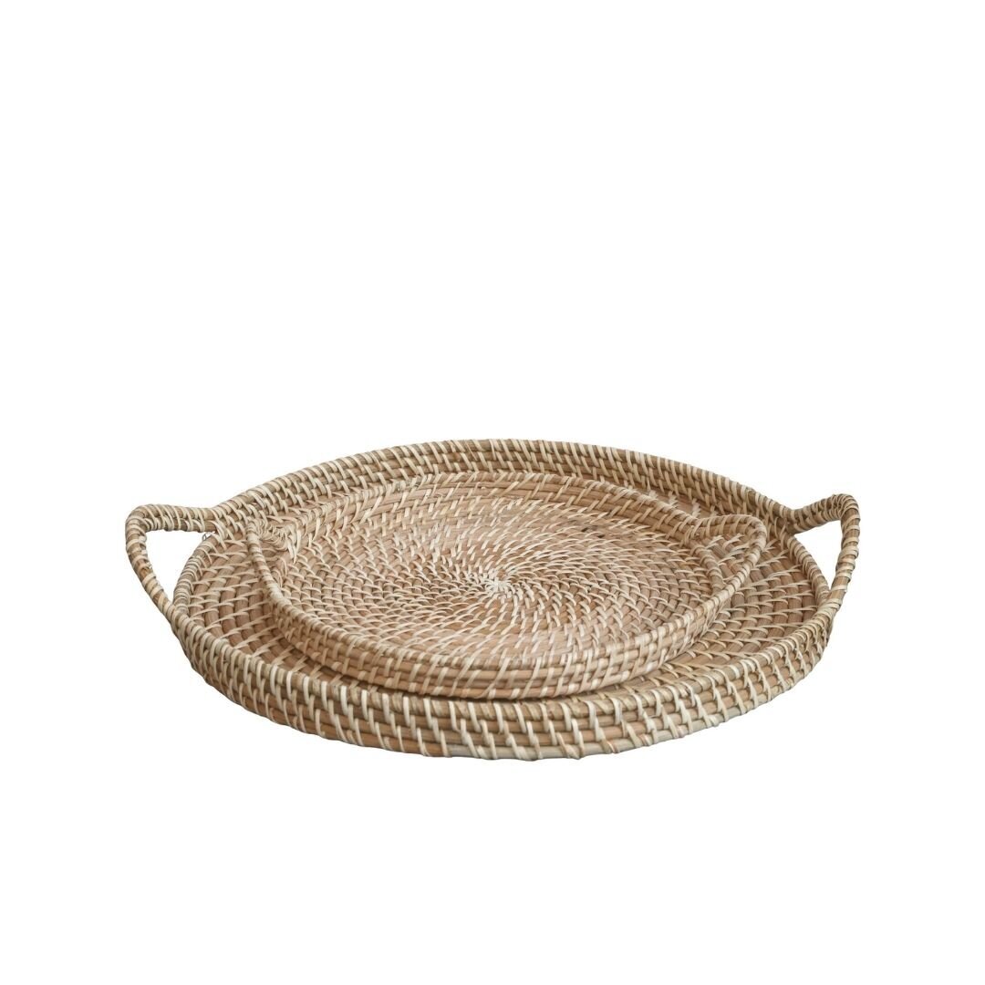 Vintage Rattan Tablett Set 3-teilig - Mit Muschel Mosaik Im Boho Style