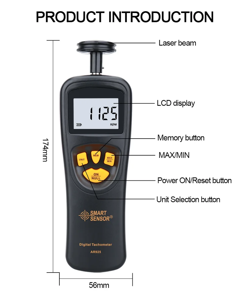 SMART SENSOR Digital Tachometer - 0,5-19999 U/min Mit LCD Hintergrundbeleuchtung