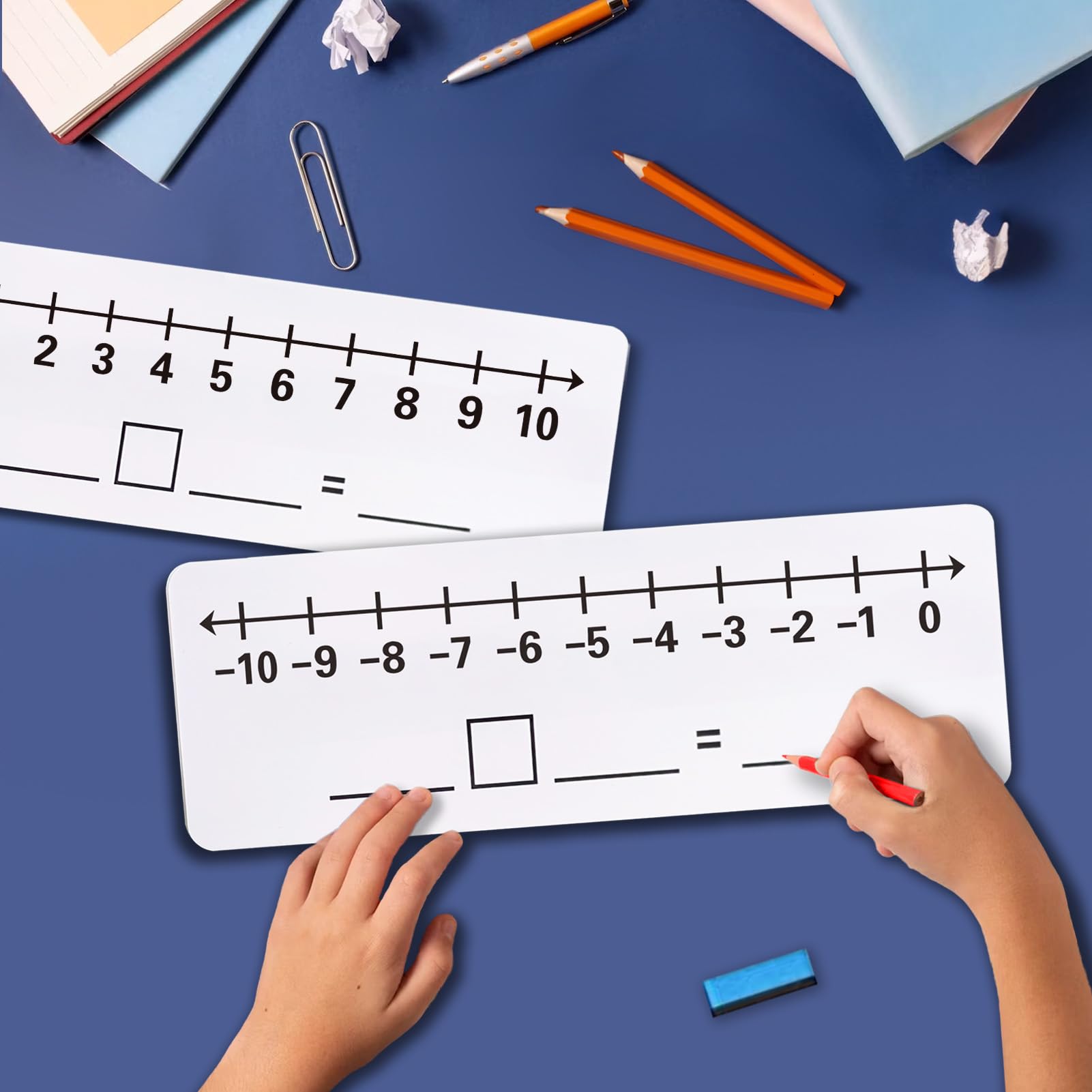 Für Lehrer, Eltern und Nachhilfe: Diese Zahlenstrahl-Tafeln sind genial für Mathe-Übungen! Zwei Stück im Set, doppelseitig - eine Seite mit 0-120 Zahlenstrahl, die andere leer für freies Üben. Aus robustem Material, das sich nicht verbiegt oder bricht. Die trocken abwischbare Oberfläche ist super - einfach mit Whiteboard-Marker beschreiben und trocken abwischen, keine Flecken. Maße: 12x98cm ausgeklappt, 12x25cm gefaltet - platzsparend und leicht zu transportieren. Perfekt für Addition, Subtraktion, Zählen und andere Mathe-Grundlagen. Ob im Klassenzimmer, Homeschooling oder für Hausaufgaben - diese Tafeln machen Lernen einfach. Kinder lieben die praktische Übungsmöglichkeit. Suchst du eine langlebige Lernhilfe für Mathematik? Hier ist sie! Mach Mathe-Lernen zum Spaß!