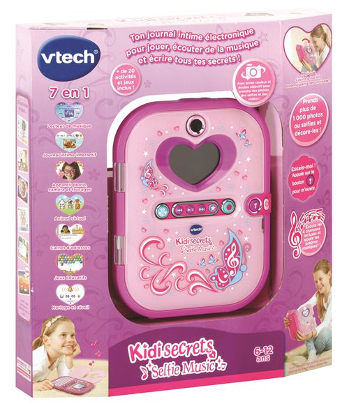 Das coole Tagebuch für alle Geheimnisse! VTech KidiSecrets Selfie Music erkennt dein Gesicht und öffnet sich nur für dich. Mit 7-in-1 Funktionen: Musikplayer, Kamera, Spiele, virtuelles Haustier und mehr. Mach Selfies mit coolen Effekten, schreib deine Geheimnisse mit der AZERTY-Tastatur oder hör deine Lieblingsmusik. Enthält 10 Mini-Spiele und über 750 Seiten für deine Notizen. In Schwarz erhältlich - für Jungs und Mädchen ab 6 Jahren. Perfektes Geschenk für neugierige Kids! Französische Version - inklusive 4 Batterien.