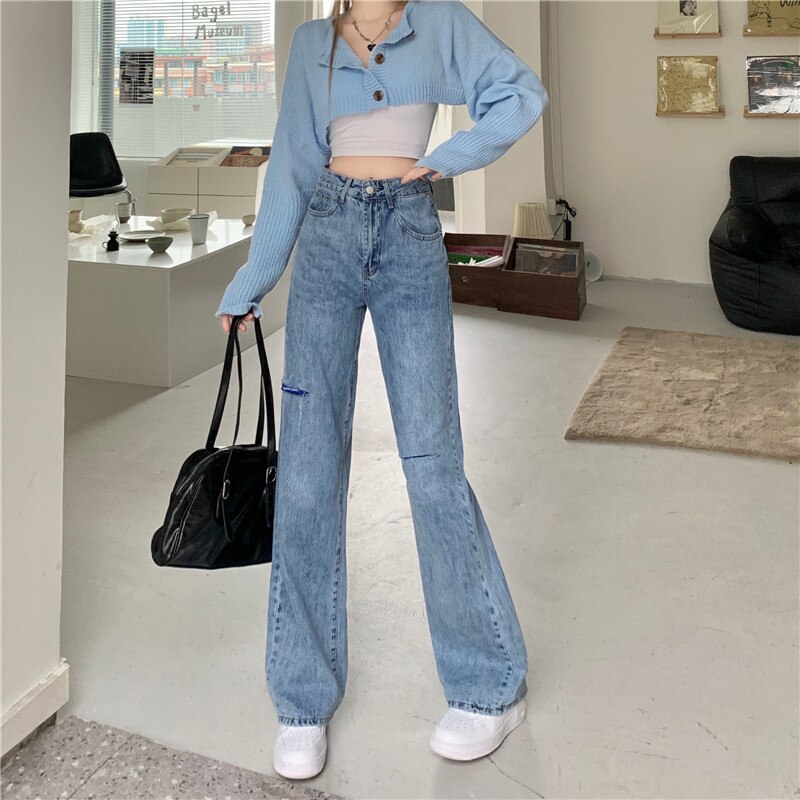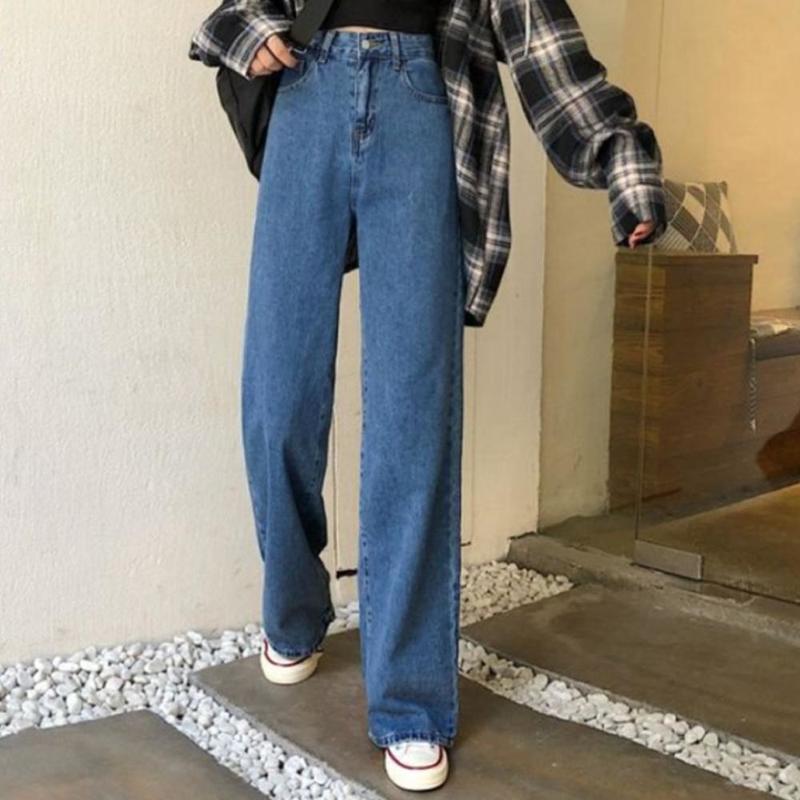 Damen Weite Jeans Hohe Taille - Vintage Baggy Hose Mit 4 Taschen