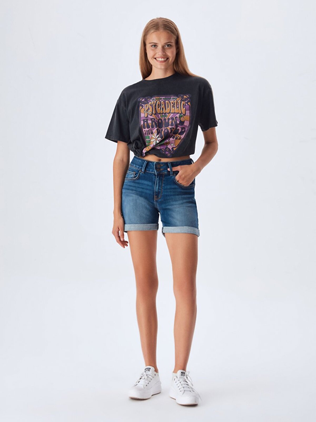 Damen Jeans Shorts - Mittlere Taillenhöhe Mit Zerrissenem Saum