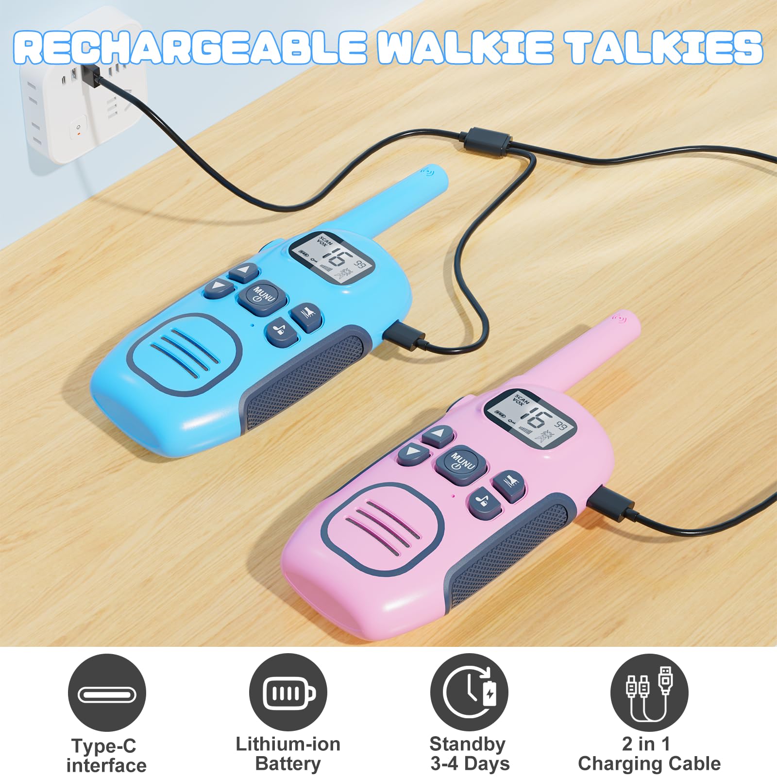 Bleib in Kontakt - auch ohne Netz! Dieses 4er-Set Walkie-Talkies von NXGKET ist der perfekte Begleiter für alle Outdoor-Abenteuer. Mit einer Reichweite von bis zu 1,5km in der Stadt und 3-5km im freien Geländer (je nach Hindernissen) könnt ihr euch auch über größere Distanzen problemlos verständigen. Die integrierten 1200mAh Li-Ion-Akkus sind aufladbar per USB-C - kein Batteriekauf mehr nötig! Nach voller Ladung halten sie bis zu 3 Tage im Standby-Modus. Mit 16 Kanälen und 99 Datenschutzcodes findet ihr immer eine freie Frequenz. Besonders praktisch: Die VOX-Funktion ermöglicht freihändiges Sprechen, die LED-Taschenlampe hilft in dunklen Situationen, und die Tastensperre verhindert versehentliches Umschalten. Die klare Sprachqualität mit 8 Lautstärkestufen und Rauschunterdrückung sorgt für perfekte Verständlichkeit. Leicht, robust und ergonomisch geformt - ideal für Kinder und Erwachsene. Perfekt für Camping, Wanderungen, Festivals oder einfach zum Spielen im Garten. Das ultimative Kommunikations-Set für die ganze Familie!