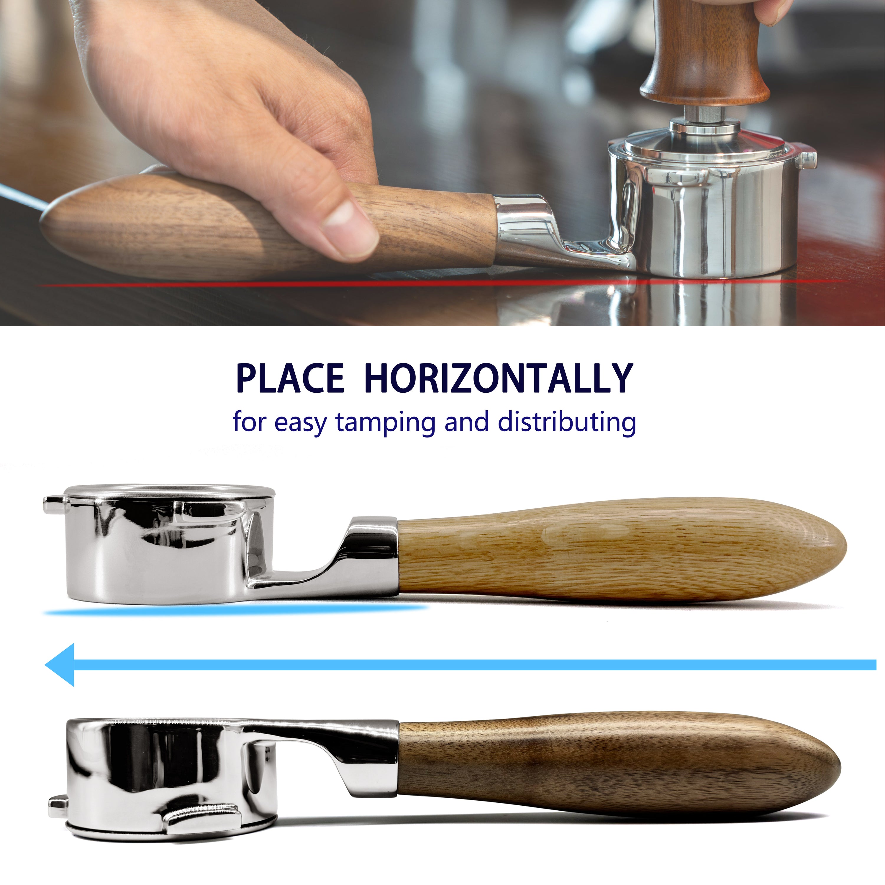 Aus lebensmittelechtem 304 Edelstahl gefertigt - rostfrei, hygienisch und super langlebig. Der federbelastete Holzgriff liegt perfekt in der Hand und sorgt für gleichmäßigen Druck auf den Kaffeepuck. So bekommst du immer eine perfekte Extraktion!