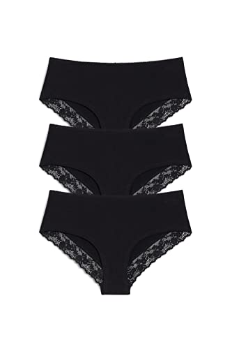 Fühl dich bezaubernd in dieser wunderschönen Unterwäsche von Iris & Lilly! Das 2er-Pack Tangas aus hauchdünner elastischer Spitze schmiegt sich weich an deine Haut und fühlt sich einfach traumhaft an. Die minimal abgedeckte Rückseite sorgt für einen glatten Look ohne lästige Falten unter enger Kleidung. Die zarten Spitzenbündchen liegen bequem an und garantieren perfekten Sitz. Als Amazon-Marke bieten wir hochwertige Stoffe und meisterhafte Verarbeitung zu einem unschlagbaren Preis. In verschiedenen Größen erhältlich - für jede Frau die perfekte Passform. Einfach unwiderstehlich und total weiblich - genau wie du!
