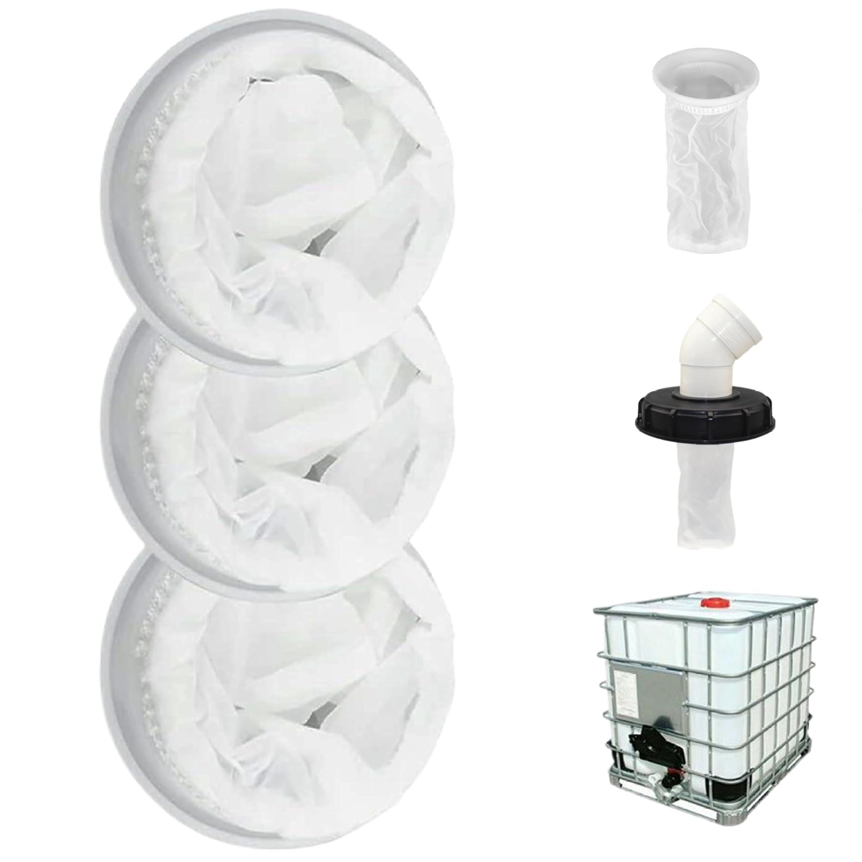 Hey, diese IBC-Filter sind genau das Richtige für deine Regenwassernutzung! Im 3er-Set und aus robustem Nylon - die halten was aus und filtern super. \\n\\nMit den Maßen 13,5x25cm und nem Anschlussdurchmesser von 10,5cm passen sie perfekt auf die meisten IBC-Tanks. Das feine Mesh hält selbst kleine Partikel zuverlässig zurück - Blätter, Zweige und anderer Dreck haben keine Chance! \\n\\nDas Beste: Die Filter sind mega einfach zu reinigen. Einfach abnehmen, unter fließendem Wasser abspülen und schon sind sie wieder einsatzbereit. Voll praktisch und wiederverwendbar! \\n\\nEgal ob für die Regentonne im Garten oder in der Industrie - diese Filter sorgen für sauberes Wasser. Die weiße Farbe sieht dabei auch noch ordentlich aus. \\n\\nEin Must-Have für alle, die Regenwasser sammeln und nutzen wollen. Einfach aufstecken und das Wasser ist gefiltert - simpler geht's nicht!