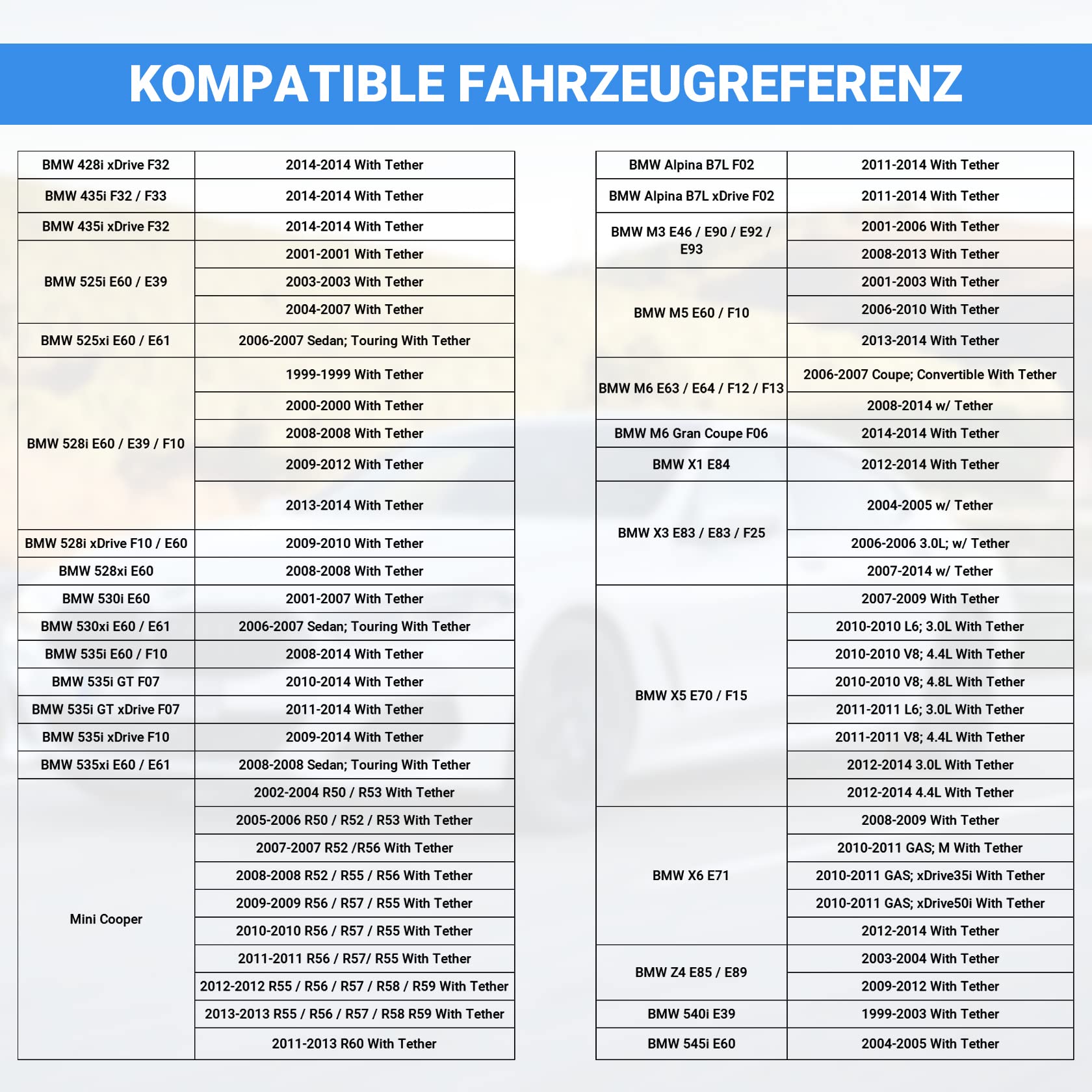 Fehlt dir der Tankdeckel an deinem BMW oder MINI? Dieser Ersatz passt perfekt! 🚗\n\nKompatibel mit BMW 1er E81/E82/E87/E88, 3er E90/E91/E92/E93, 5er E60/E61, X3 E83, X5 E70 und MINI Cooper, Clubman, Countryman, Paceman.\n\nWichtig: Nur für Benziner! Hochwertige Verarbeitung, temperaturbeständig und mit perfekter Dichtung gegen Gerüche.\n\n✔️ OE-Nummer: 16117222391\n✔️ Für BMW und MINI Modelle\n✔️ Nur für Benzinfahrzeuge\n✔️ Auslaufsichere Dichtung\n✔️ Einfache Montage\n\nSchluss mit unangenehmen Benzingerüchen! Dieser Tankdeckel sorgt für dichten Verschluss und saubere Optik. Einfach wechseln und fertig! 🔧