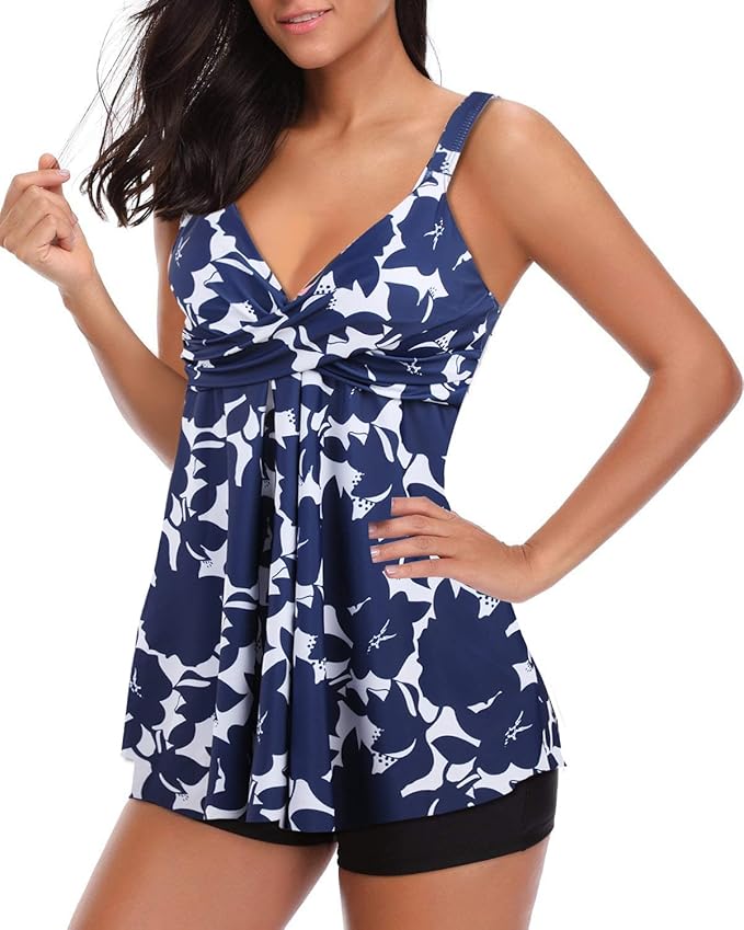 Tankini Damen Zweiteiler Badeanzug Mit Push-Up - Bademode Set Mit Shorts