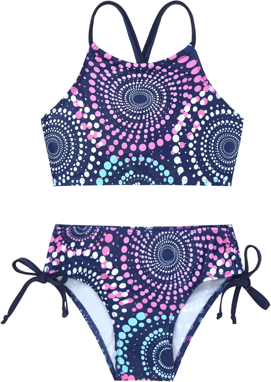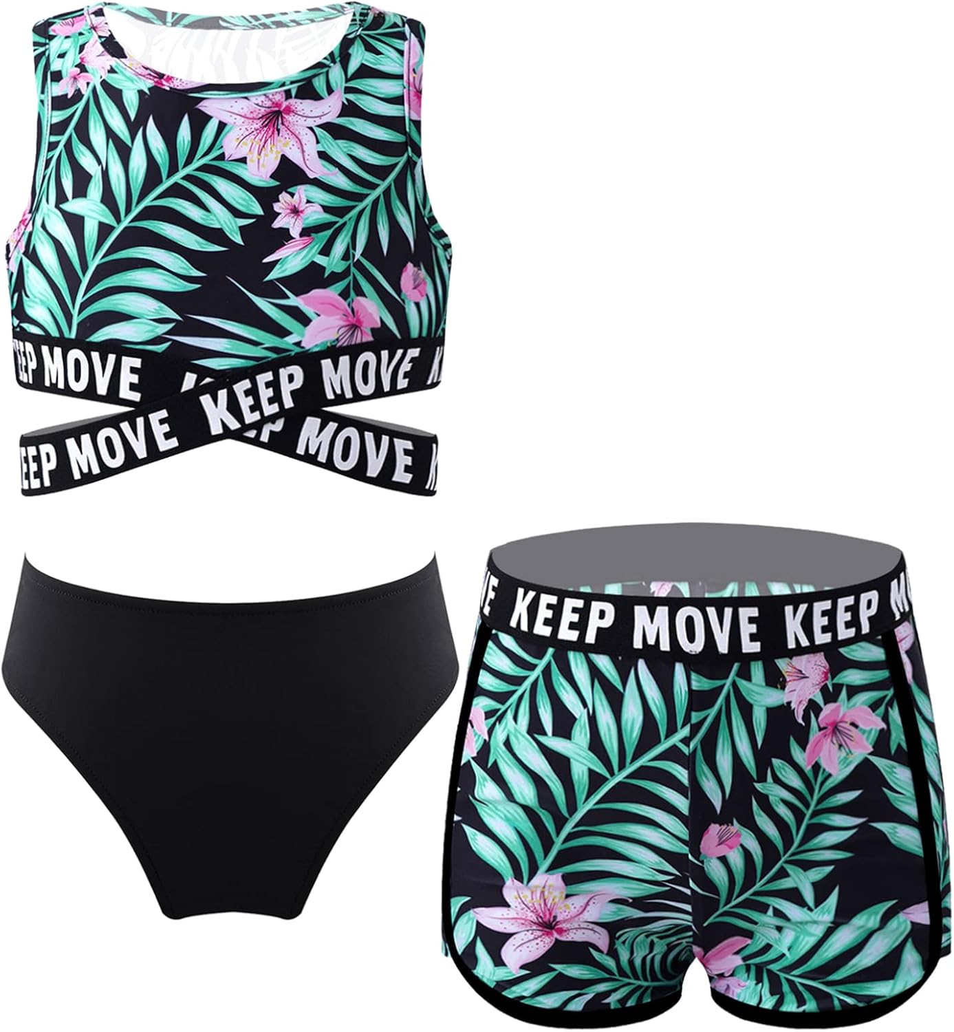 Mädchen Tankini Set Mit Tropischem Blätter Print - Bustier Oberteil Mit Brazilian Slip