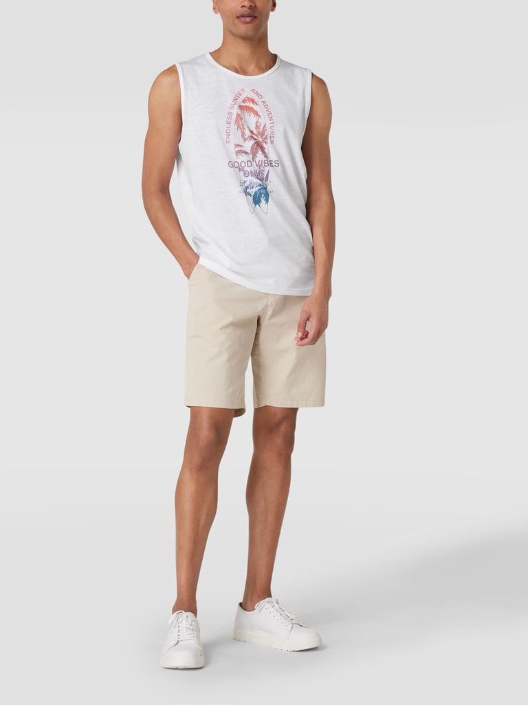 Einfach mal lässig bleiben! Dieses Tom Tailor Tanktop ist das perfekte Basic-Teil für deine Freizeit. Aus weichem Single-Jersey-Stoff, super angenehm auf der Haut. Mit coolem Print auf der Brust und Rippbündchen am Rundhalsausschnitt - sitzt einfach perfekt. Regular Fit, bei Größe M etwa 72cm lang. Ohne Ärmel, also ideal für warme Tage oder unter nem Hemd. Tom Tailor steht für nachhaltige Mode - das erkennst du am BE PART-Hangtag. Von Größe S bis 3XL, also für fast jeden was dabei. Einfach anziehen und wohlfühlen!