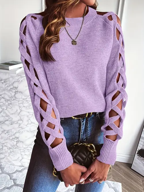 Tanmolo Damen Rollkragenpullover - Lochmuster Ärmel Strickpulli