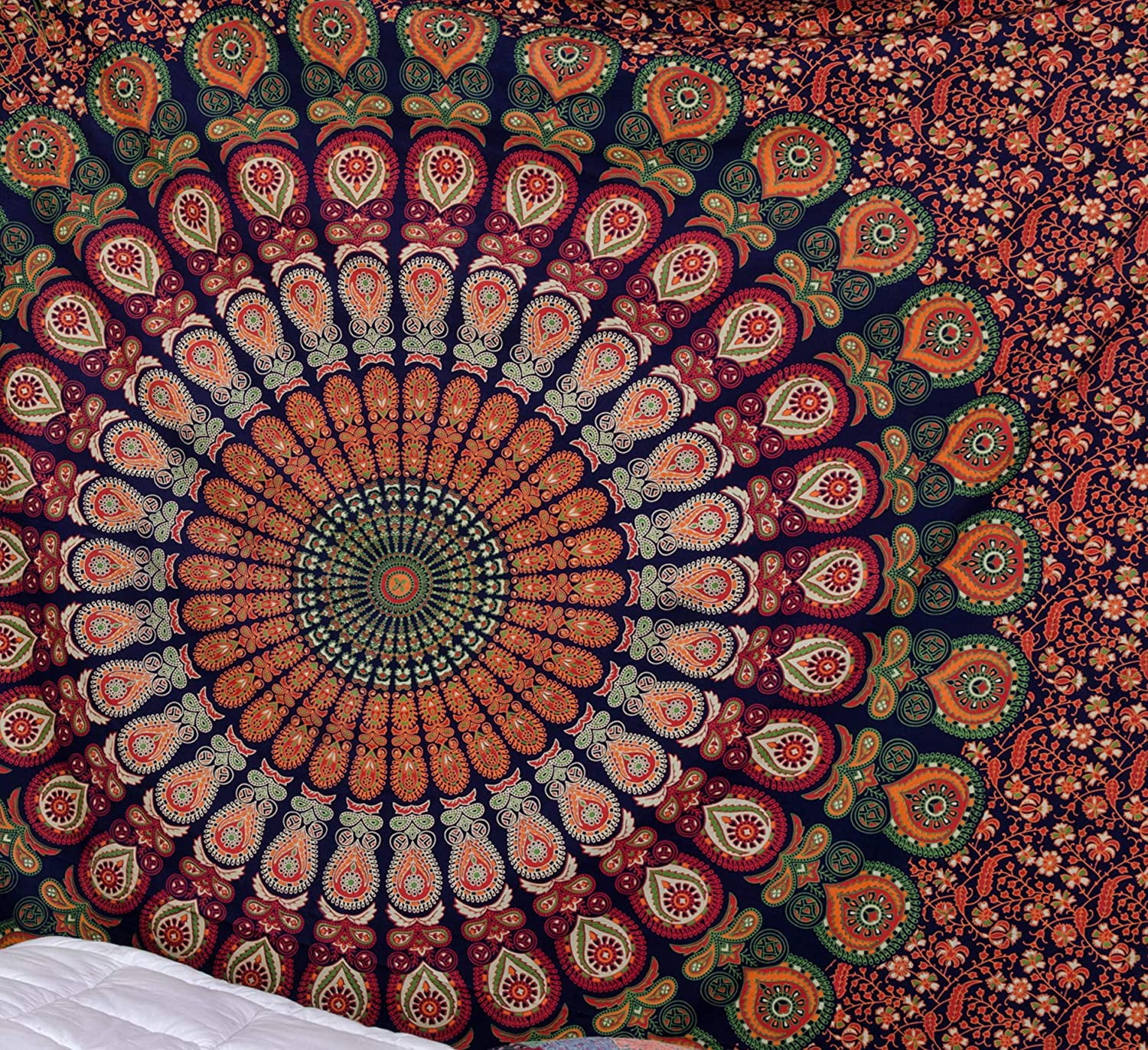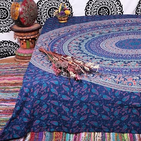 Verwandle deine Wände in ein mystisches Kunstwerk! Dieser atemberaubende Baum des Lebens Wandbehang in Türkis mit filigranen Blumenmustern bringt bohemian Flair in dein Zuhause. Aus umweltfreundlicher Baumwolle gefertigt, ist der 140x215 cm große Tapestry vielseitig einsetzbar - als Wandbehang, Bettüberwurf, Raumteiler oder Sofadecke. Die psychedelischen Mandala-Muster schaffen eine geheimnisvolle Atmosphäre in jedem Raum. Perfekt fürs Zimmer, Wohnzimmer oder als stylische Picknick-Decke. Einfach in kaltem Wasser waschen (kein Bleichen!) und der Zauber bleibt erhalten. Handgefertigt in Indien - ein Unikat voller Spiritualität und Schönheit für alle, die es anders mögen!