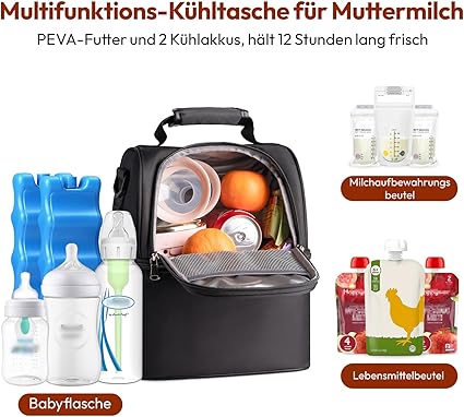Isolierte Babyflaschen-Tasche - Wasserdicht, Auslaufsicher, Große Kapazität Für Muttermilch & Essen, Schwarz