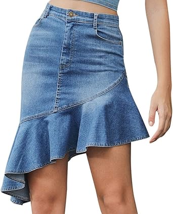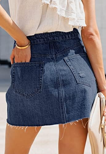 Damen Jeansrock Mit Taschen - Minirock A-Linie Hohe Taille Sommer