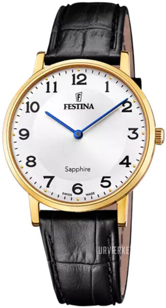 Diese elegante Festina Taschenuhr verleiht dir einen Hauch von Vintage-Charme! Das goldfarbene Edelstahlgehäuse mit Haken für eine Kette (separat erhältlich) sieht einfach klasse aus. Das weiße Ziffernblatt mit schwarzen arabischen Zahlen und Zeigern ist gut ablesbar, und der Deckel lässt sich leicht öffnen und schließen. Mit dem präzisen Quarzwerk gehst du immer genau. Perfekt als besonderes Accessoire oder als Geschenk für Liebhaber klassischer Uhren. Einfach in die Tasche stecken oder mit Kette tragen - so geht zeitloser Stil!