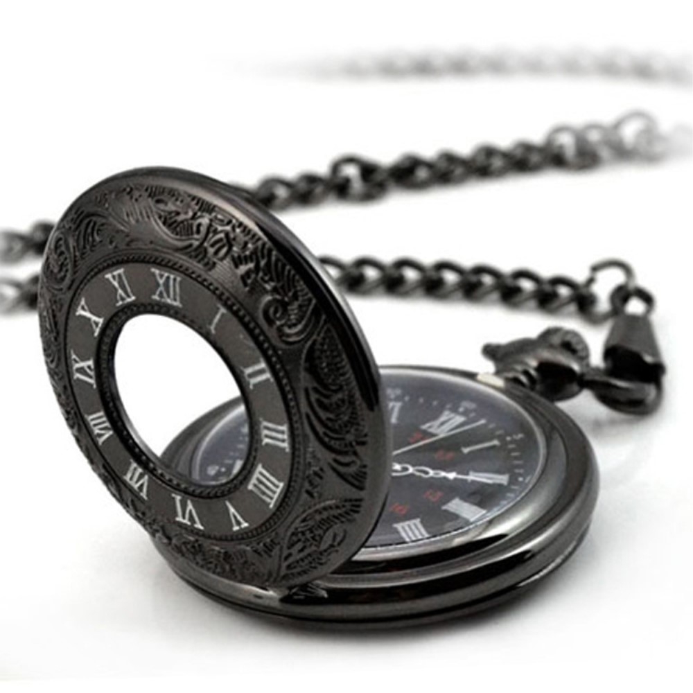 Taschenuhr Herren Mit Gravur - Retro Quarz Uhr Mit Kette Schwarz