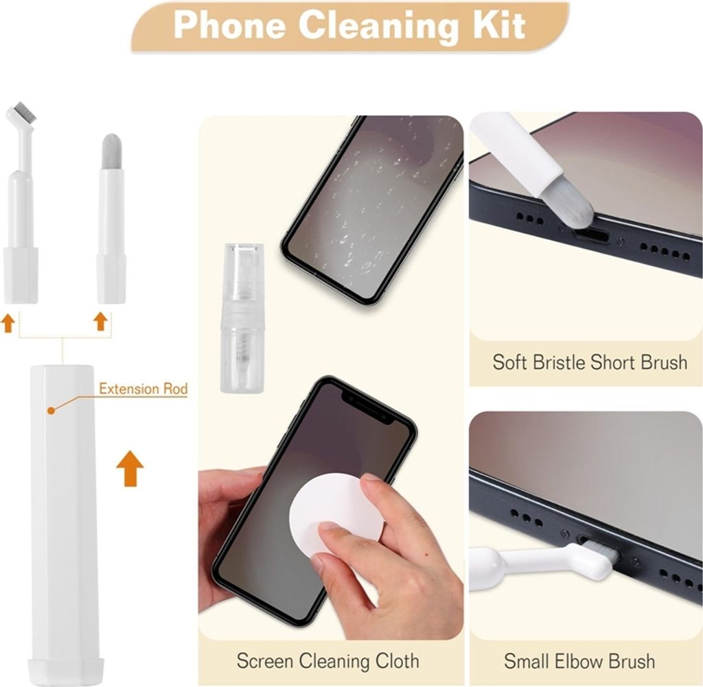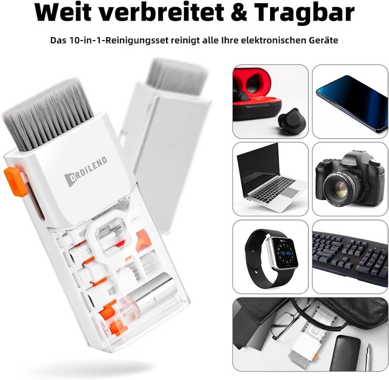 Schluss mit staubigen Tastaturen und verschmierten Bildschirmen! Dieses 7-in-1 Reinigungsset ist der absolute Alleskönner für deine Elektronik. Im Set findest du alles, was du brauchst: Silikonspitzen mit Minibürste, eine Reinigungsbürste mit Flock-Schwamm, eine große Bürste für gröberen Schmutz, einen Tastenkappenzieher für mechanische Tastaturen, einen Bildschirmwischer und Reinigungsflüssigkeit. Damit kannst du nicht nur deine Tastatur gründlich sauber machen, sondern auch Handys, Tablets, Kameras und Kopfhörer pflegen. Die hochdichten Borsten entfernen selbst hartnäckigen Staub, und der Tastenkappenzieher macht das Demontieren von Keycaps zum Kinderspiel. Das kompakte Set hat einen gut verschließbaren Deckel - super praktisch für unterwegs oder fürs Büro. Einfach in die Tasche stecken und immer griffbereit haben. Perfekt als Geschenk für Technik-Freunde oder für dich selbst. Mit diesem Set bleibt deine ganze Elektronik-Sammlung blitzblank!