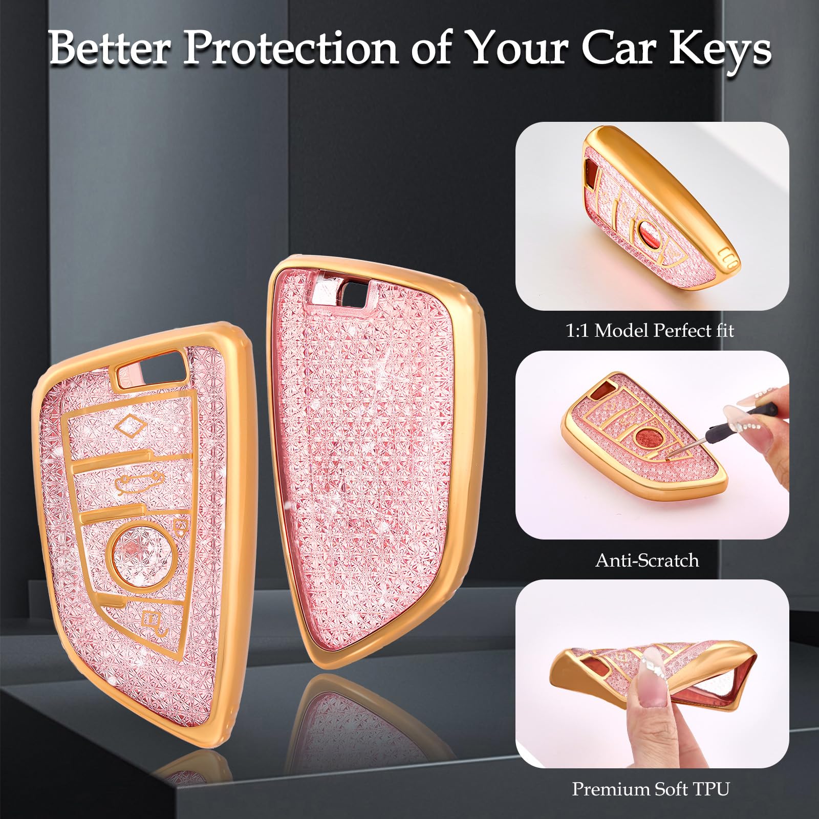 Schütze deinen BMW-Schlüssel vor Kratzern und Abnutzung! Diese stylische Schlüsselhülle passt perfekt für BMW X1, X2, X3, X4, X5, X6 und die 1er, 2er, 3er, 5er, 6er, 7er Series. In Rosa-Silber oder anderen Farben erhältlich.