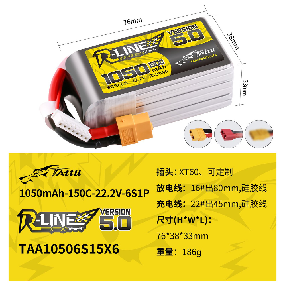 Tattu 6S Lipo Akku 1050mAh 22,2V - XT60 Für RC Modellbau