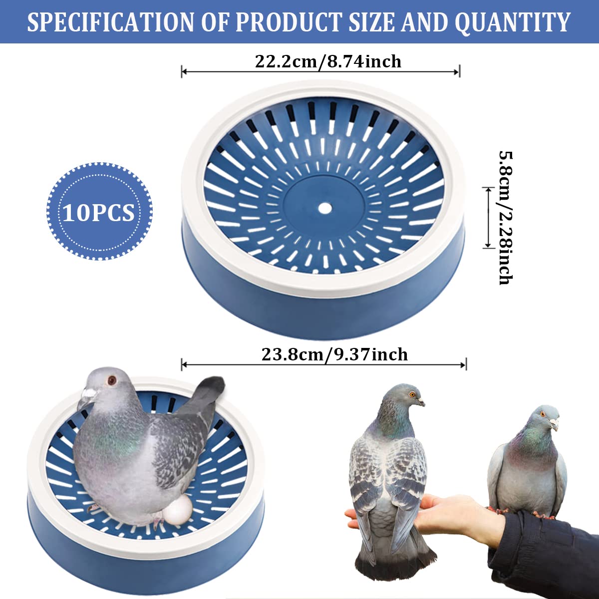 Perfekte Nistplätze für deine Tauben! Dieses Set mit 6 grünen Nestschalen aus robustem ABS-Kunststoff bietet deinen Vögeln gemütliche Brutplätze. Maße: 22x22x4,9cm - ideal für Tauben und andere Vögel. Die glatte Oberfläche ist sicher für die Tiere und leicht zu reinigen. Atmungsaktiv und wiederverwendbar - eine langlebige Lösung für deine Voliere oder Taubenschlag. Schafft eine geschützte, warme Umgebung für die Brutzeit. Deine Tauben werden diese gemütlichen Nester lieben! Einfach zu platzieren und zu pflegen.
