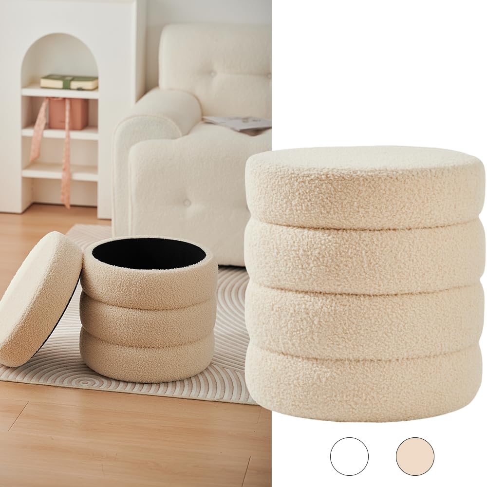 Dieser süße runde Hocker ist ein echter Allrounder für dein Zuhause! Aus weichem Teddy-Samt gemacht, fühlt er sich super kuschelig an und sieht dabei richtig stylisch aus. Unter dem abnehmbaren Deckel versteckt sich praktischer Stauraum für Zeitschriften, Spielzeug oder andere Kleinigkeiten - so bleibt alles schön ordentlich!