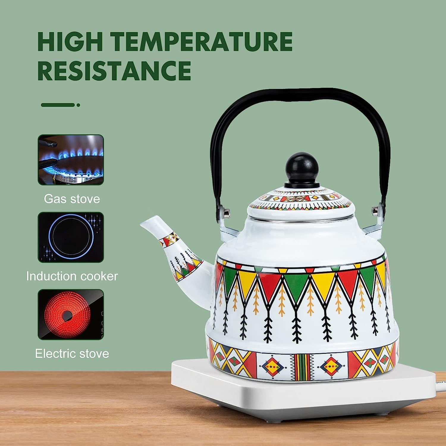 MUELODSIC Emaille Teekessel Retro - 1,5L Blumenmuster Für Herd & Küche