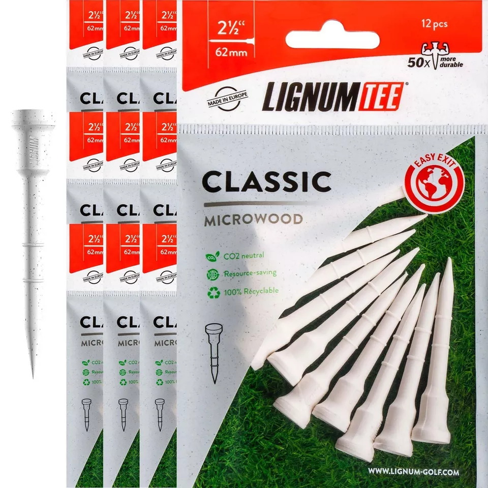 Revolutionäre Golf Tees, die nicht nur dein Spiel verbessern, sondern auch die Umwelt schonen! Die LIGNUM Ecoline Tees mit ihrem einzigartigen Ringsystem garantieren bei jedem Abschlag die gleiche, perfekte Ballhöhe für maximale Konsistenz und Kontrolle. Hergestellt aus speziellem Micowood-Material, sind sie extrem stabil und langlebig. Doch das Beste: Diese Tees sind komplett biologisch abbaubar - sowohl das Tee selbst als auch die Verpackung! CO2-freundlich produziert, 100% natürlich und ohne Kinderarbeit hergestellt, werden sie sogar in Werkstätten für behinderte Menschen verpackt. So verbesserst du nicht nur dein Handicap, sondern tust auch noch etwas Gutes für unseren Planeten. Die knalligen Neon-Farben sorgen dafür, dass du dein Tee immer schnell findest. Einfach einstecken, abschlagen und sich über bessere Drives und ein reines Umweltgewissen freuen!