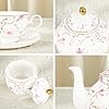 Lass dich von der Eleganz dieses wunderschönen Teeservices verzaubern! Das 21-teilige Set im zarten Pastell-Design mit feinen Goldrändern und romantischen Blumenmustern verwandelt jede Tee- oder Kaffeerunde in ein besonderes Erlebnis. Hergestellt aus hochwertigem Porzellan ohne tierisches Knochenmehl ist es besonders robust, leicht und dennoch extrem stabil. Im Lieferumfang findest du alles, was du für gemütliche Stunden mit Familie und Freunden brauchst: eine 860 ml Teekanne, 6 Teetassen à 170 ml mit passenden Untertassen, 6 Teelöffel, eine Zuckerdose (170 ml) und ein Milchkännchen (190 ml). Perfekt für Nachmittagstee, Geburtstagsfeiern, Hochzeiten oder einfach um deinem Esstisch einen besonderen Charme zu verleihen. Das Service ist spülmaschinenfest und hitzebeständig - allerdings sollte der Goldrand nicht in die Mikrowelle. Ein wunderbares Geschenk für Teeliebhaber, zur Hochzeit oder zum Einzug! Jedes Set wird sorgfältig in stoßfester Verpackung geliefert, damit es sicher bei dir ankommt. Tauche ein in die Welt des britischen Tea-Time-Feelings!