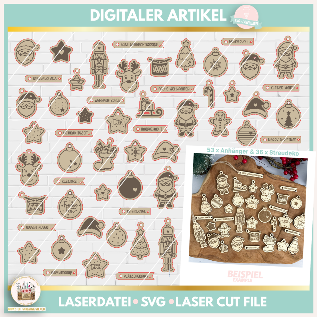 Wow, dieses Weihnachts-Bastelset ist einfach perfekt für die Vorweihnachtszeit! 72 Holzanhänger in 12 verschiedenen Styles - da ist für jeden Geschmack was dabei. Sterne, Schneemänner, Weihnachtsbäume, Engel und noch viel mehr. Die Holzteilchen sind aus hochwertigem Naturholz, schön dick und brechen nicht so leicht. Die Oberfläche ist super glatt und lässt sich easy bemalen. Mit dabei: 82 Glöckchen, 82 Hanfseile (24 cm), 12 Aquarellstifte und 2 lange Hanfseile (2 m) - alles was du brauchst! Perfekt für Kinder ab 3 Jahren, aber auch Erwachsene haben ihren Spaß dabei. Die Anhänger sind lasergeschnitten mit glatten Kanten und coolen Mustern. Du kannst sie bemalen, beschriften, bekleben - deiner Kreativität sind keine Grenzen gesetzt! Ob für den Weihnachtsbaum, als Geschenkanhänger oder zur Deko fürs Fenster - alles möglich. Super für gemütliche Bastelnachmittage mit der Familie, für den Kindergarten oder die Schule. Mach dein Zuhause weihnachtlich und hab dabei jede Menge Spaß! Einfach die Stifte rausholen und loslegen - die Weihnachtszeit kann kommen!
