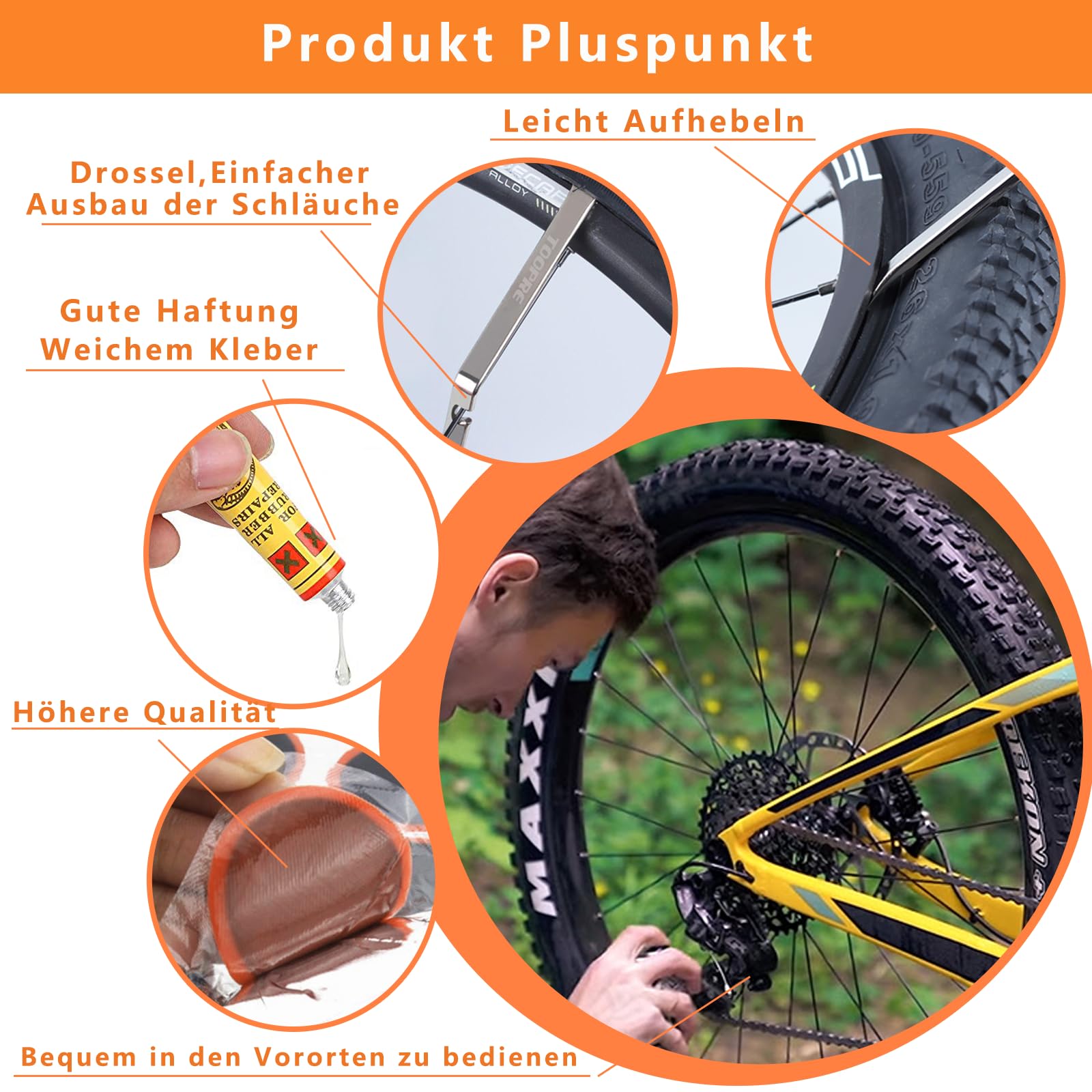 Fahrrad Flickzeug Set 52 Teile - Reifen Reparatur Selbstklebend