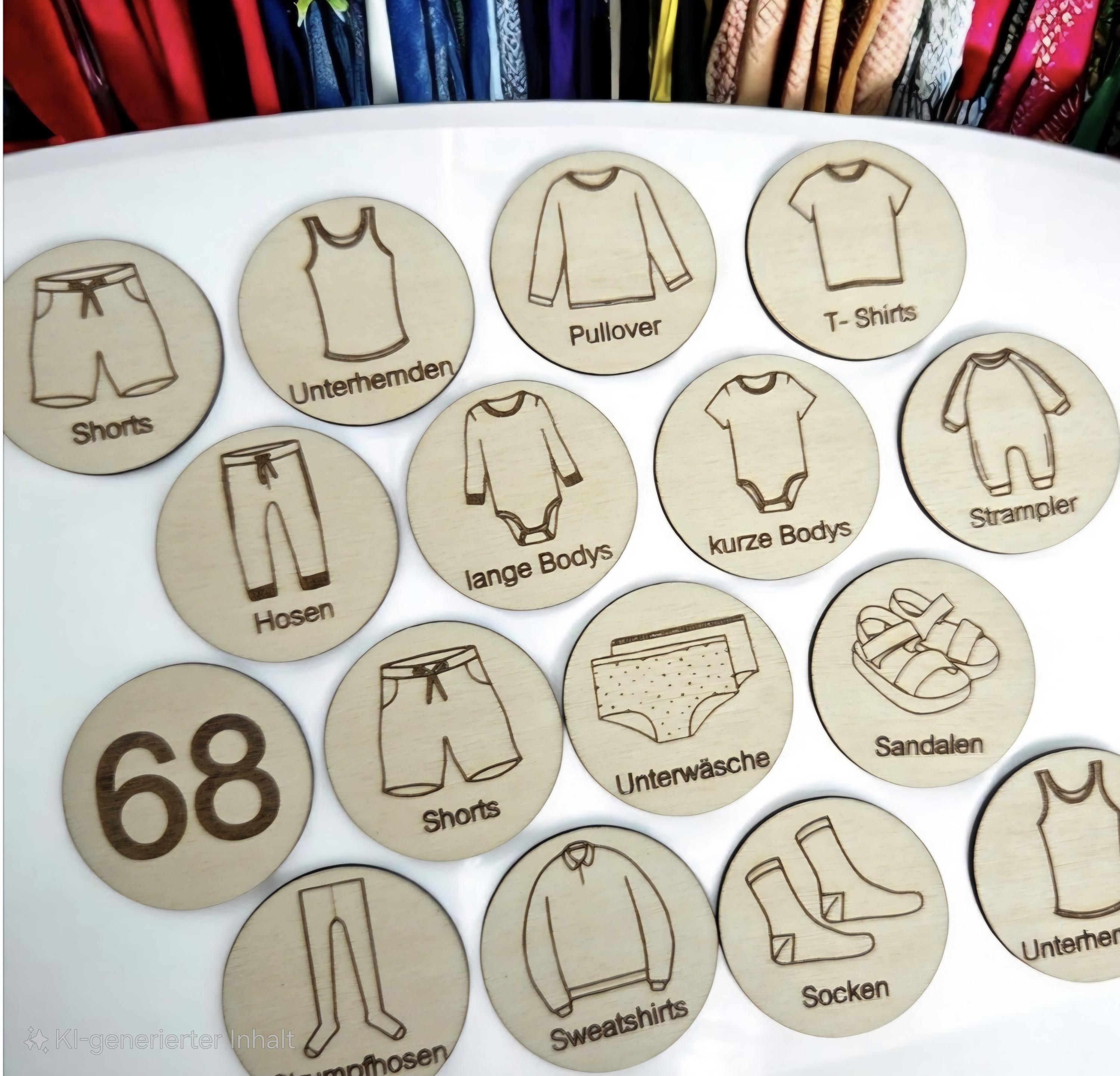 Endlich Ordnung im Kleiderschrank! Diese praktischen Holz-Teiler von FIDWALL bringen System in deine Kleidersammlung. Besonders genial für Babykleidung - einfach nach Größen oder Altersstufen sortieren und du findest sofort was du brauchst. Aber nicht nur für Babys: Du kannst auch deine Outfits für die ganze Woche vorbereiten - Montag bis Sonntag beschriftet und schon weißt du morgens genau, was du anziehst. Die Teiler sind aus hochwertigem Holz gefertigt, super stabil und haben eine glatte, splitterfreie Oberfläche die weder Kleidung noch Hände zerkratzt. Das doppelseitige Design mit klaren Beschriftungen sorgt dafür, dass du von jeder Seite siehst, was sich dahinter verbirgt. Perfekt für zu Hause, aber auch super für Büros (wenn du dort Wechselkleidung aufbewahrst), Fitnessstudios oder Baby-Boutiquen. Ein richtig durchdachtes Geschenk für junge Eltern oder alle, die etwas mehr Ordnung in ihrem Leben brauchen. Einfach zwischen die Kleidungsstapel stellen und schon sieht der Schrank nicht nur ordentlicher aus, sondern du sparst auch jede Menge Zeit beim Suchen. Kleine Helfer, große Wirkung!