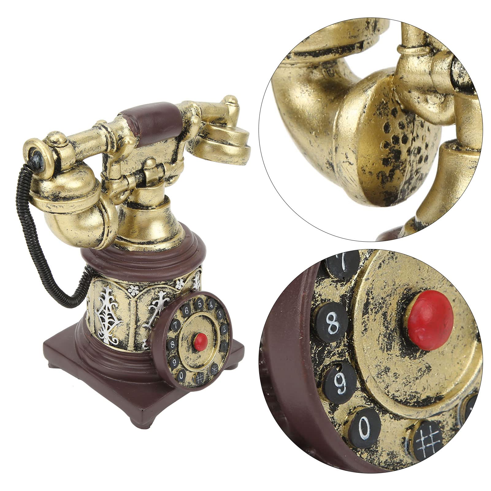Dieses niedliche antike Telefon-Ornament bringt Retro-Charme in dein Zuhause! Aus hochwertigem Harz gefertigt, ist es robust und detailreich verarbeitet. Mit ca. 18,5x16cm ist es die perfekte Größe für Schreibtisch, Regal oder Sideboard. Das kabelgebundene Design erinnert an die guten alten Zeiten - total nostalgisch! Die Oberfläche ist ungiftig und sicher, also auch super als Geschenk für Oma, Opa oder Telefon-Nostalgiker. Ob im Wohnzimmer, Büro, Café oder Restaurant - dieses Deko-Stück ist immer ein Hingucker. Es ist mehr als nur Deko: Es erzählt Geschichten von früher! Ein wunderbares Geschenk für jeden, der Vintage-Liebe mag.