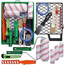 Alles was du zum Streichen brauchst in einem Set! Enthalten sind 2x 25cm Farbroller aus Nylon-Velour für ein streifenfreies Finish, ein ergonomischer Griff und eine Aluminium-Teleskopstange von 63-130cm. So erreichst du auch hohe Wände und Decken ohne Leiter. Die Rollen nehmen Farbe super auf und geben sie gleichmäßig ab - kein Tropfen, keine Läufer. Perfekt für Wände, Decken, Möbel und alle glatten Flächen. Einfach zusammenschrauben und loslegen - professionelle Ergebnisse garantiert!