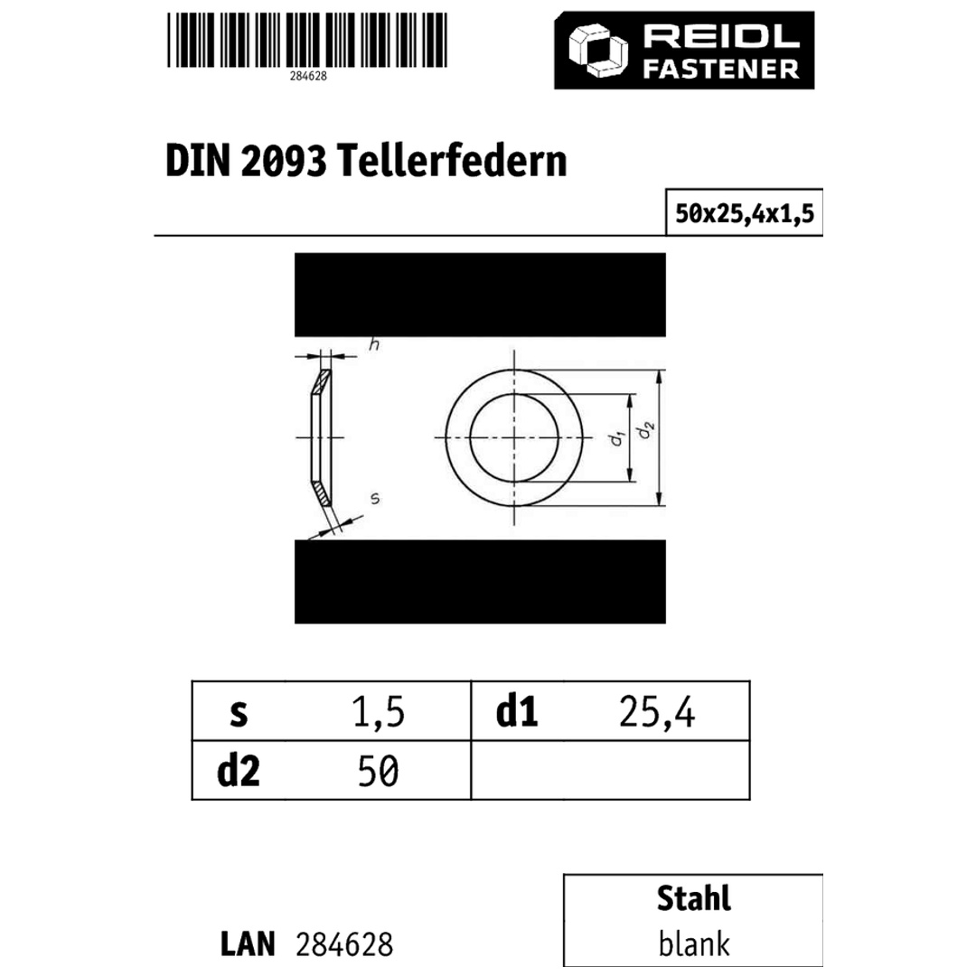 DIN 2093 Tellerfedern 80x41x4mm - Federstahl Tellerscheiben 50 Stück Set