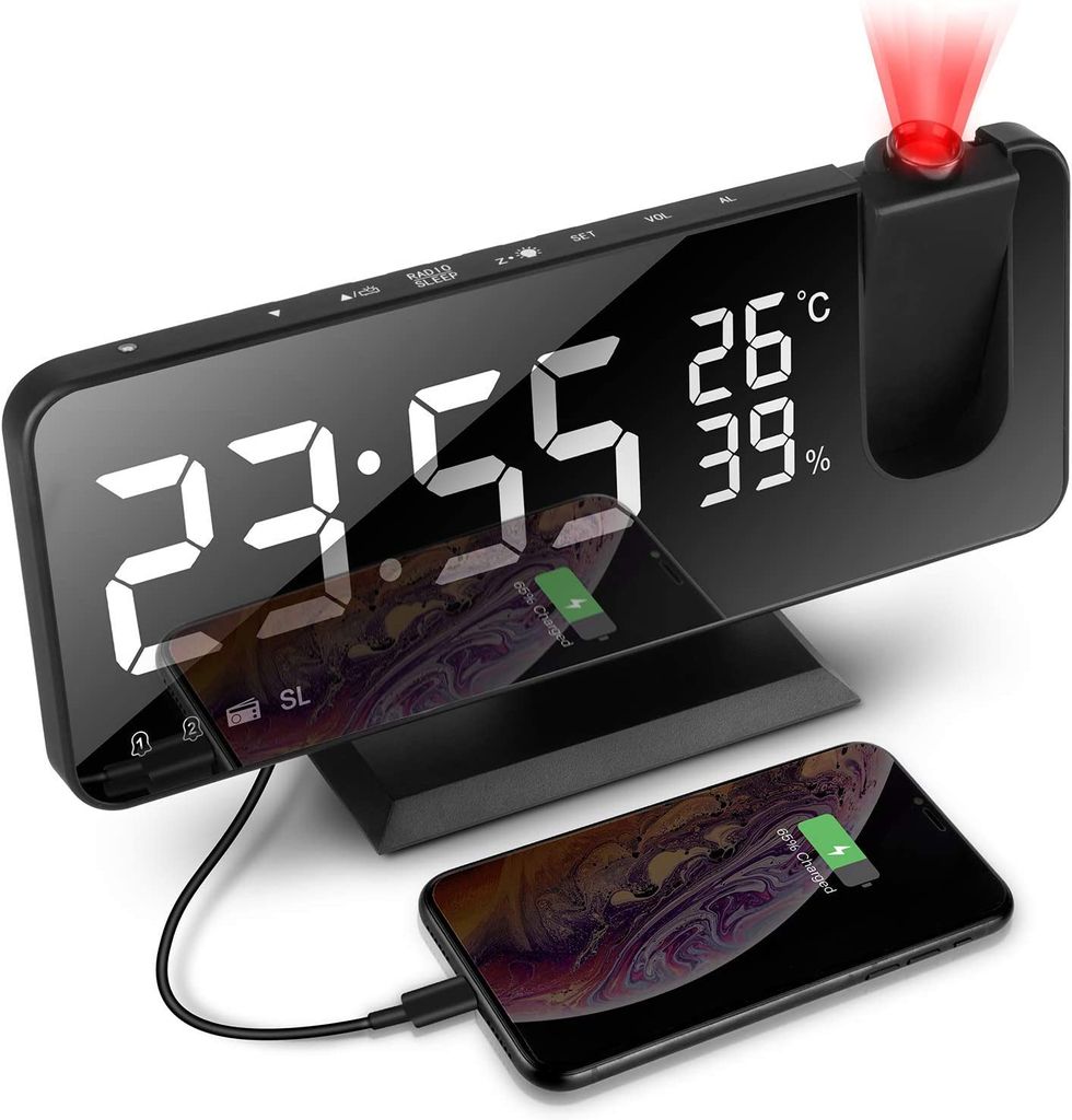 Projektionswecker Mit Temperatur & Feuchtigkeit - LED Deckenprojektion | 180° Drehbar