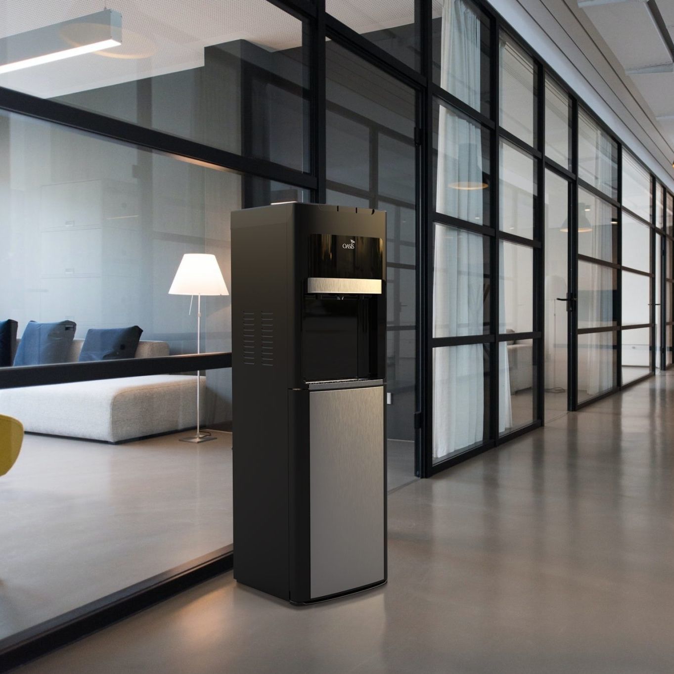 Bodenstehender Wasserspender 96cm 3 Temperaturen - 5 Gallonen Flaschen Schwarz