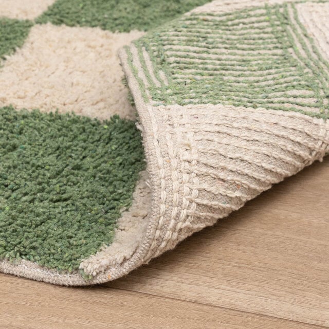 Alter, dieser Retro-Teppich ist ja mal richtig stylisch! Das Schachbrett-Design in Grün-Weiß bringt sofort Retro-Charme in dein Zuhause. Aus natürlicher Baumwolle handgetuftet - super weich und gemütlich. Mit 20mm Flor kannst du buchstäblich darin versinken. Perfekt für Wohnzimmer, Schlafzimmer oder Kinderzimmer - passt zu vielen Einrichtungsstilen. Die robuste Struktur hält auch stärkerer Beanspruchung stand. Einfach zu pflegen: Regelmäßig absaugen oder ausklopfen. Der runde Form gibt jedem Raum eine gemütliche Atmosphäre. Ob unter den Couchtisch oder als Eyecatcher in der Raummitte - dieser Teppich macht immer was her. Einfach ausrollen und sich über den neuen Look freuen - mehr Wohlfühl-Faktor geht nicht!