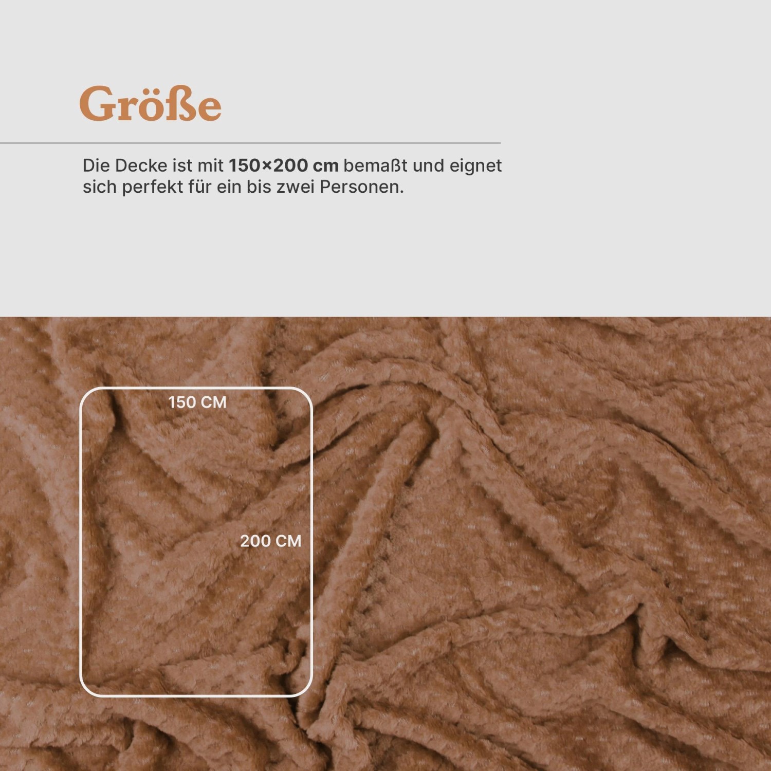 Hergestellt aus 100% Polyester-Mikrofaser fühlt sich die Decke unglaublich weich und samtig an - absolut kratzfrei und hautfreundlich. Das Materialgewicht von ca. 285g/m² sorgt für die perfekte Balance zwischen Wärme und Leichtigkeit.