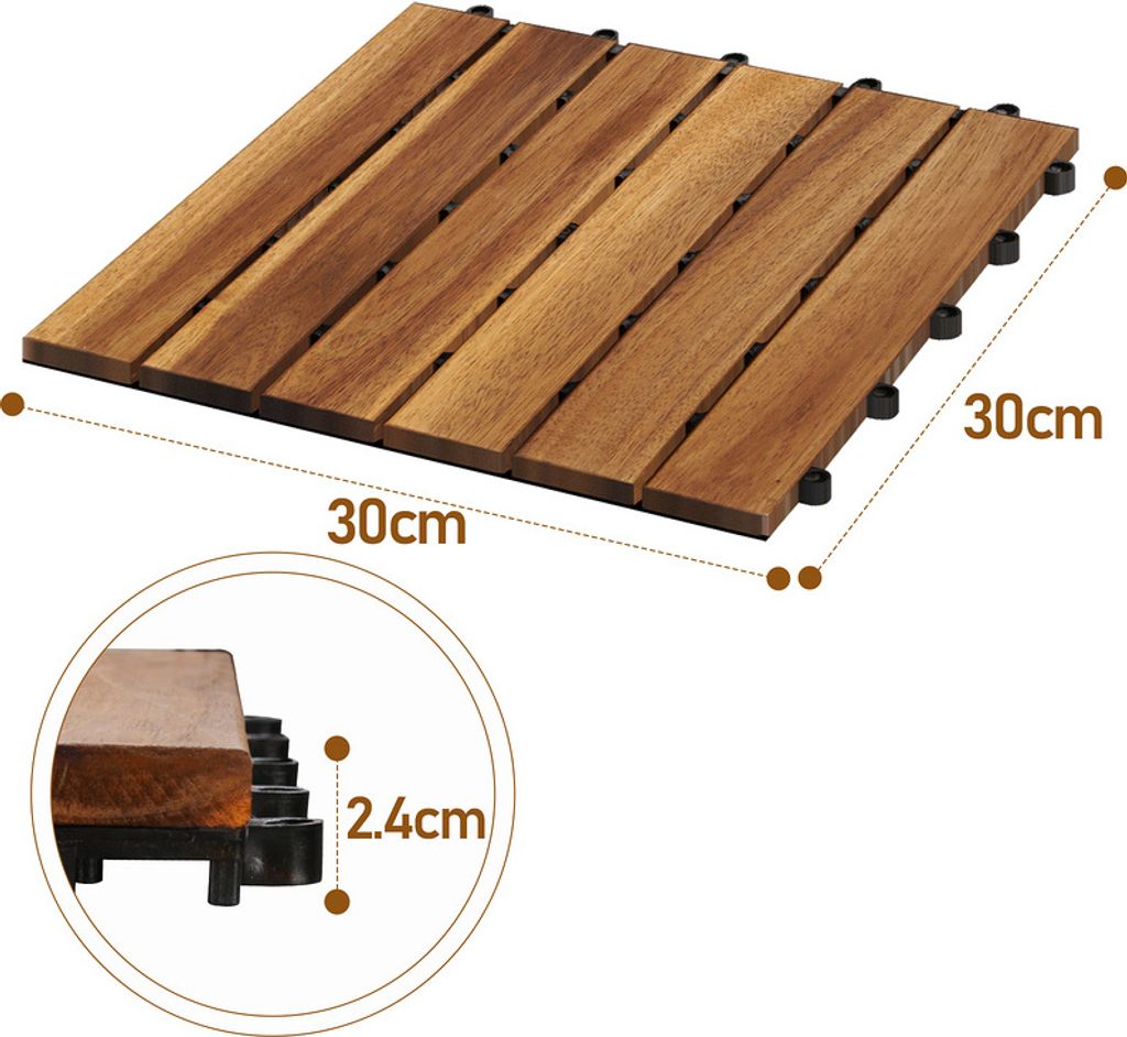 44x Terrassenfliesen Akazienholz 30x30cm - 4m² Set Mit Klicksystem