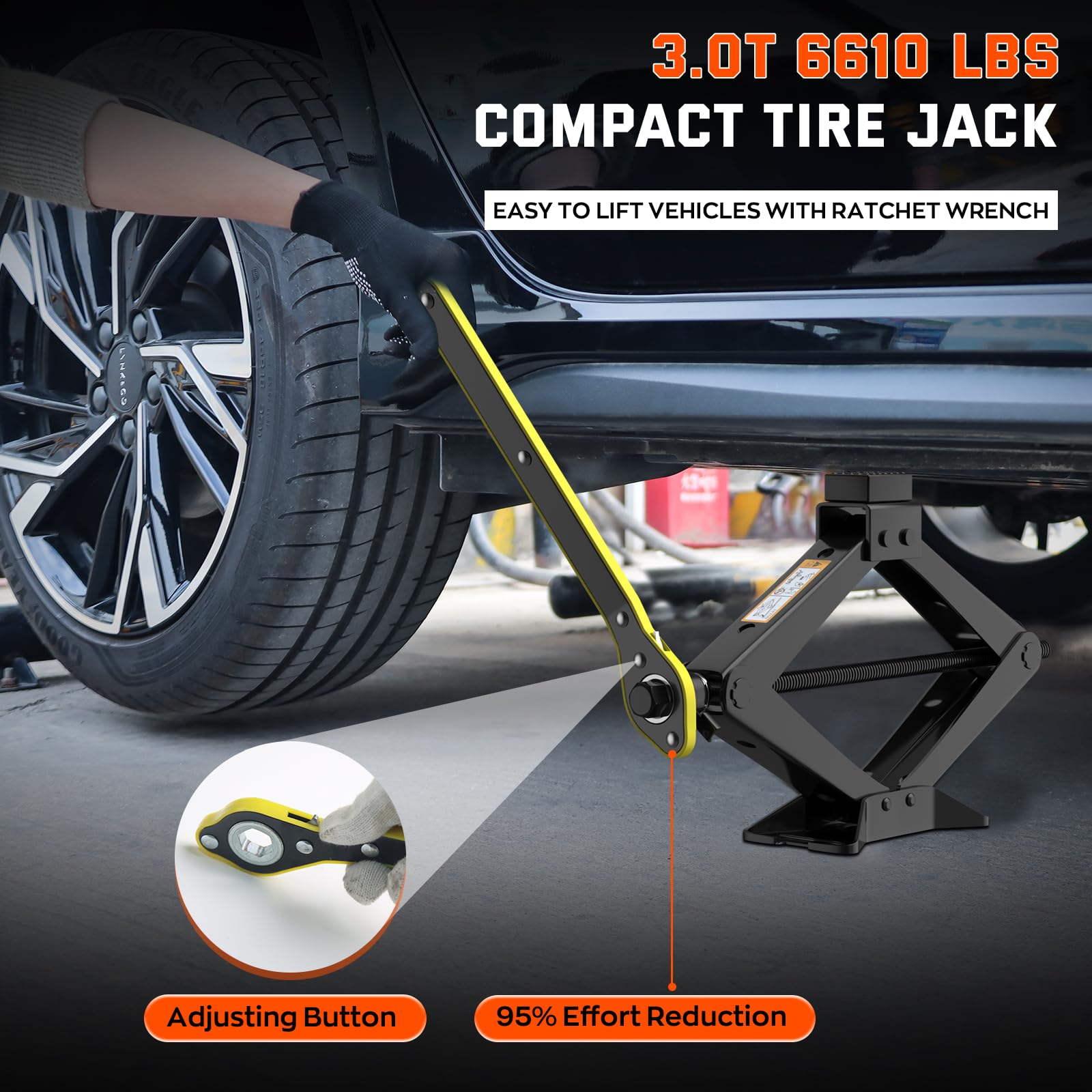 IMAYCC 3T Wagenheber Set Mit Tesla-Pads - Universal-Scherenheber Für Reifenwechsel & Notfälle
