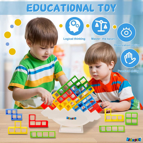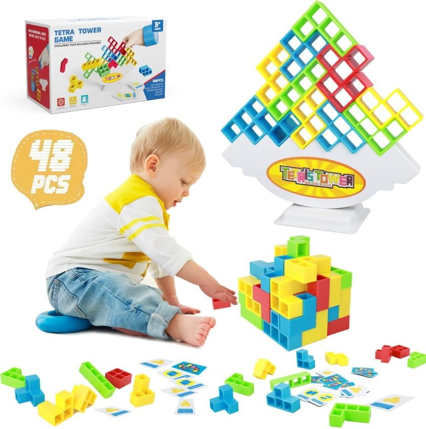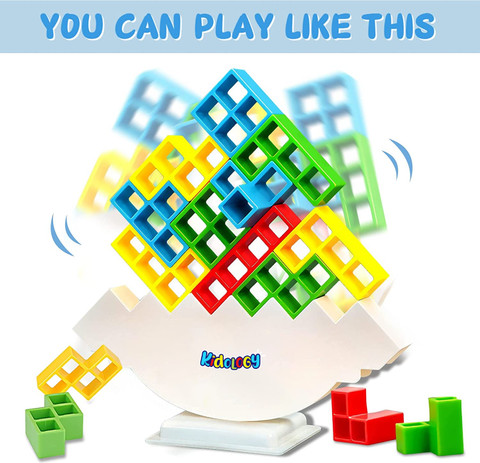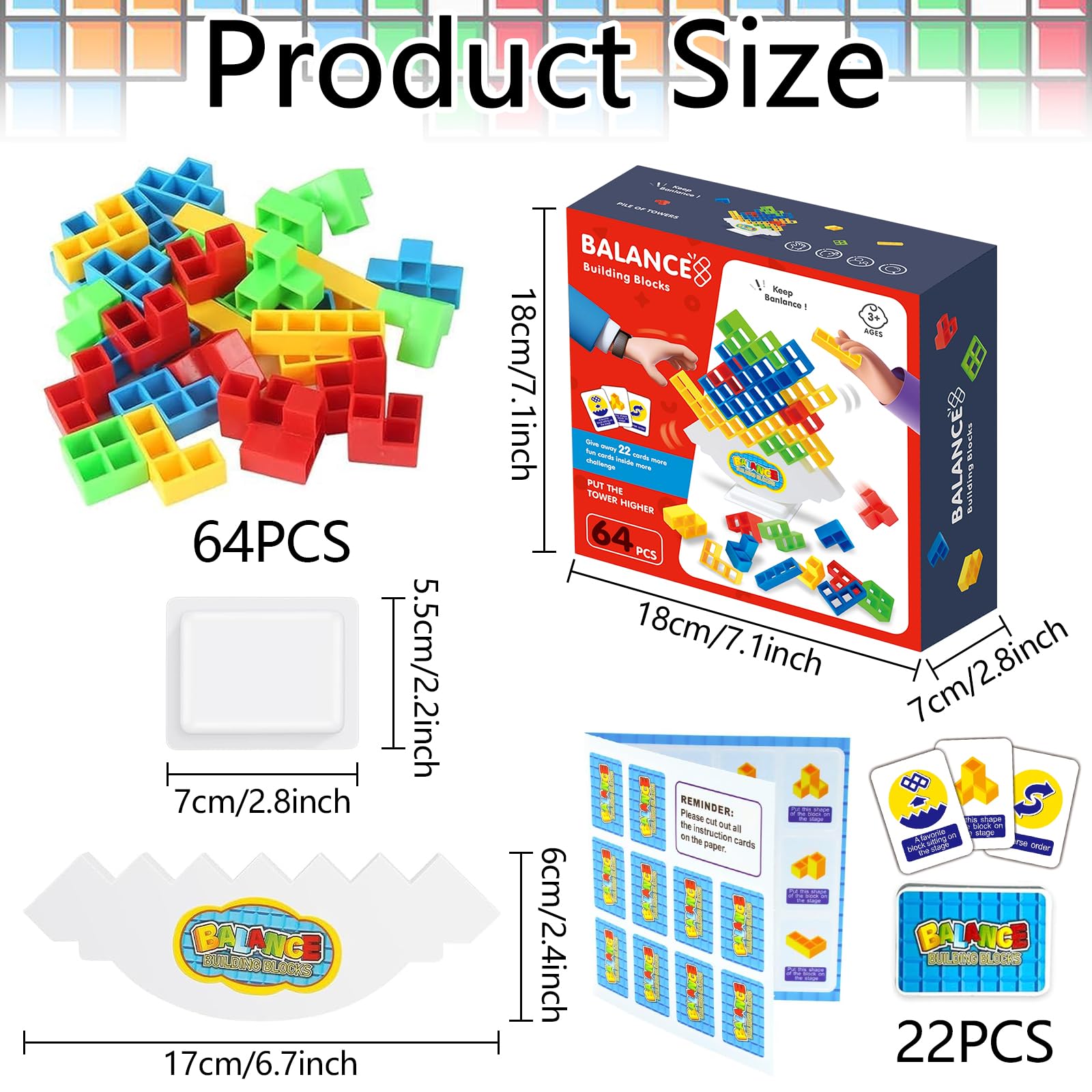 64 Teile Tetra Tower Spiel - Tetris Balance Stapelspiel Für Familie & Kinder